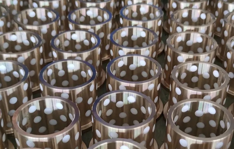 - Structure : Trous percés sur la matrice en bronze avec une couverture de surface ≤ 30 %, colonnes en PTFE enfoncées, formant une configuration de « lubrification solide porteuse métallique »
